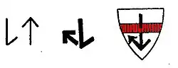 Le blason a une barre rouge dans le bouclier, à travers laquelle une ancre noire, mutilée sur le bras supérieur et gauche, est collée. Il y a 3 plumes de héron noir sur le casque, qui est recouvert de couvertures rouges et argentées.