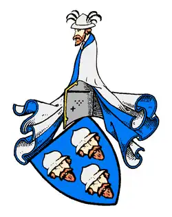 Les armoiries de la famille représentent en bleu trois (2:1) têtes masculines barbues avec des chapeaux en fer argenté (chapeau tatar). Sur le casque se trouve le torse d'un homme avec des vêtements fendus bleu-argent et un col bleu-argent. L'aconit sur la tête barbue est décoré de trois plumes de coq noires de chaque côté. Les couvre-casques sont bleus et argentés.