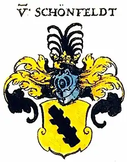 - (de) Cet article est partiellement ou en totalité issu de l’article de Wikipédia en allemand intitulé « Schönfeld (Adelsgeschlecht) » (voir la liste des auteurs).