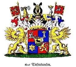 - Johann von Tiesenhausen (mort en 1815), fils du précédent, de la branche de Bersohn, Ober-Hofmeister (c'est-à-dire grand-chambellan) à la cour de Russie