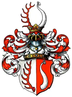 Les armoiries de la famille ( de la communauté héraldique de Rogala) sont divisées, avec un bâton de cerf droit rouge à huit pans en argent à droite et une corne de buffle argentée gauche en rouge à gauche. Sur le casque, le rouge et l'argent recouvrent le mât de cerf et la corne de buffle.