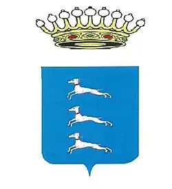 Armes : « D'azur à trois chiens courants d'argent, accolés de gueules et posés l'un sur l'autre »