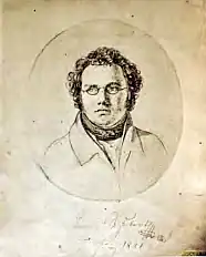 - Anselm Hüttenbrenner (au centre). [Lithographie de Joseph Eduard Teltscher en 1827].
