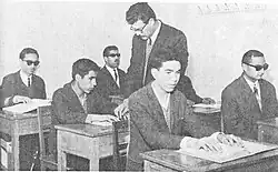 En 1965, l'école Reza Pahlavi des aveugles (Amuzeschgah-e Nabinayan-e Reza Pahlavi) fut fondée sous le patronage de Farah Pahlavi. Cette école était responsable de l'éducation et de la formation professionnelle des aveugles. L'école était équipée d'un dortoir où la moitié des étudiants avaient un logement offert. Les étudiants étaient enregistrés directement à l'école par leurs familles, par l'intermédiaire des mairies ou d'autres organisations caritatives, telles que le Lions Club. Les cours de l'école étaient axés sur les compétences particulières des aveugles. Ainsi, en plus des cours d'éducation générale, des cours de dactylographie et d'artisanat furent également organisés. En plus de l'éducation pour les enfants, l'école dispensa également des cours pour adultes[21].