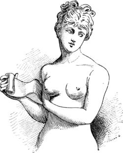 - (gr. apodêsmos). Bandage attaché autour de la poitrine des jeunes filles pour arrêter par la pression le développement du sein[4] ; on regardait comme essentiel à la beauté et à la grâce d'une jeune femme de comprimer ainsi la gorge. On portait ce bandage sur la peau. Mais il ne faut pas croire qu'il fût une partie du vêtement ordinaire, ni que l'usage en fût général, en Grèce ou en Italie ; il n'était employé que par des personnes exposées à un développement excessif ou donné par des mères à leurs filles quand elles étaient trop préoccupées de leur beauté[5].