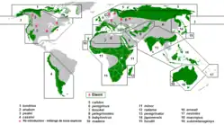 Carte mondiale de répartition du Faucon pèlerin[Note 1]