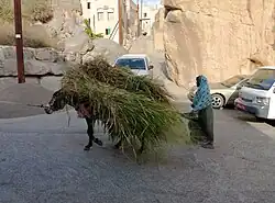 - Dans le passé les ânes jouaient un rôle important pour le transport des marchandises dans les régions escarpées et difficiles d'accès telles que les wadis, alors qu'ils étaient moins à l'aise dans le sable que les dromadaires. Lorsque le commerce maritime était florissant dans l'Océan Indien, les Omanais transportaient aussi des ânes. Vers 1840, Oman exportait près de 630 ânes par an vers l'île Maurice, souvent en provenance de Bahreïn[12]. L'« âne de Mascate » (Muscat ass) était réputé. Aujourd'hui les ânes ont été en grande partie supplantés par les véhicules tout-terrain. Certains sont redevenus sauvages. Leur nombre s'accroît, au point de constituer une menace pour l'environnement, car ils détruisent la végétation des zones montagneuses.