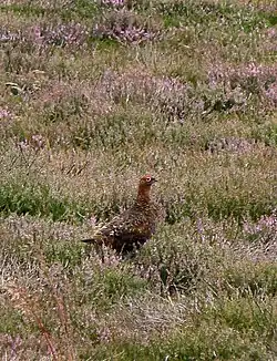 Le grand tétras et le lagopède alpin, placés sur la liste rouge, se reproduisent en Écosse mais à nul autre endroit sur les îles britanniques. Le premier disparaît du pays en 1785 avant d'être réintroduit avec succès à partir de la population suédoise en 1837[90],[91]. Il y a des populations importantes d'autres galliformes comme le tétras lyre et le célèbre lagopède d'Écosse[92]. La caille des blés, la perdrix grise et le faisan de Colchide sont très présents, alors que la perdrix rouge l'est un peu moins[93]. On trouve une petite colonie de faisan doré au sud-ouest du pays[94].