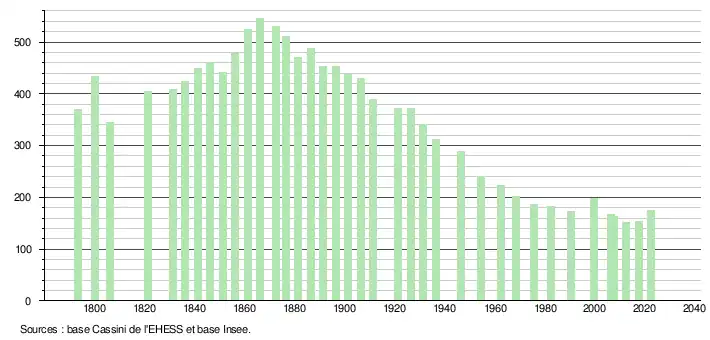 - ↑ Fiches Insee - Populations de référence de la commune pour les années 2006, 2007, 2008, 2009, 2010, 2011, 2012, 2013, 2014, 2015, 2016, 2017, 2018, 2019, 2020, 2021 et 2022.