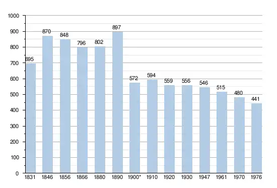 - Source: DGS, 1831 à 1970=recensements population, 1976= habitants au 31 décembre