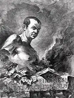 - Portrait en buste antique de Giovanni Battista Piranesi, gravure placée en frontispice des Antiquités romaines de Giovanni Battista Piranesi, 1750.