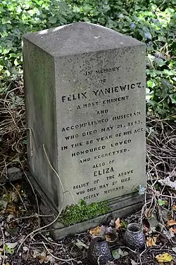 Feliks Janiewicz est enterré aux côtés de sa femme, Eliza au cimetière de Warriston, à Édimbourg.