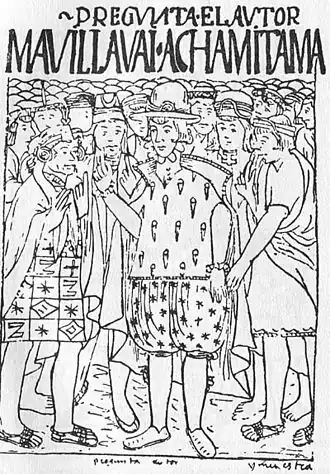 - ↑ (même si l'on pense aujourd'hui qu'il était plutôt originaire comme on l'a vu de la région d'Ayacucho)