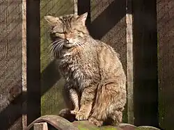 Le Chat sauvage[4] (Felis silvestris) est une espèce de félins du genre Felis présent dans divers types d'habitats. Son aire de répartition couvre l’Europe, l’Asie occidentale et l’Afrique. Il est de taille moyenne à petite, son aspect est très variable selon les sous-espèces, mais en général sa robe est beige avec des rayures foncées.