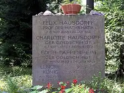 Le soir du , ils se suicidèrent tous trois aux barbituriques. Le dernier souhait de Hausdorff ne se réalisa pas : Wollstein mourut à Auschwitz. Par contre sa fille Lenore (Nora) (1900 - 1991) survécut à la Shoah et mourut à Bonn.