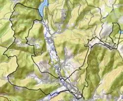 L'occupation des sols de la commune, telle qu'elle ressort de la base de données européenne d’occupation biophysique des sols Corine Land Cover (CLC), est marquée par l'importance des forêts et milieux semi-naturels (82,4 % en 2018), en augmentation par rapport à 1990 (81,5 %). La répartition détaillée en 2018 est la suivante : forêts (72,9 %), milieux à végétation arbustive et/ou herbacée (9,6 %), zones agricoles hétérogènes (7,3 %), prairies (4,9 %), zones urbanisées (4,8 %), zones humides intérieures (0,5 %), eaux continentales[Note 5] (0,1 %)[25]. L'évolution de l’occupation des sols de la commune et de ses infrastructures peut être observée sur les différentes représentations cartographiques du territoire : la carte de Cassini (XVIIIe siècle), la carte d'état-major (1820-1866) et les cartes ou photos aériennes de l'IGN pour la période actuelle (1950 à aujourd'hui)[Carte 3].