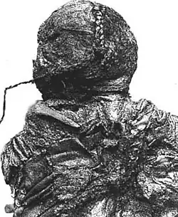 La découverte est attribuée à un fermier local, Jens Zakariasson. Le corps était enveloppé dans une cape en peau de mouton finement cousue et retenue au cou par un cordon de cuir. Une ceinture de laine de 4 à 5 cm de large et 67 cm de long complétait l’habillement. Il est probable qu’elle portait également des vêtements en fibres végétales, particulièrement en lin, qui n’ont pas été conservés. Les cheveux, longs de 90 cm, étaient savamment tressés.