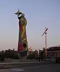 Les grandes dimensions de la sculpture imposèrent la réalisation in situ, le recours à des grues et à des maçons. La statue de béton est couverte de céramiques rouges, jaunes, vertes et bleues, traité à la manière des mosaïques. Elles ont été créées par Joan Gardy Artigas. Les couleurs de ces céramiques sont communes dans l'œuvre du maître. Elles reflètent la lumière et provoquent un contraste fort avec le fond gris du béton.
