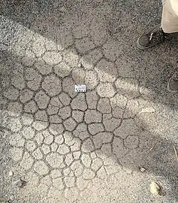 Les fissures de dessiccation se développent dans des matériaux cohésifs, telle les boues courantes, qui subissent un retrait en cas de perte d'eau ;on ne peut pas s'attendre à ce que les matériaux granulaires non adhérents, tels que le sable, présentent des fissures de retrait[4]. Des fentes de dessiccation profondes se développent dans les vasières supratidales dans la mesure où elles ne sont que rarement inondées par les marées, ce qui laisse le temps aux sédiments de sécher[5]. On en trouve également dans le lit asséché des rivières, au fond des marais asséchés (durant l'assec) ou des lacs asséchés.