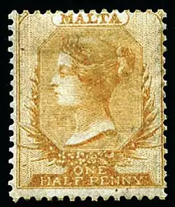 - ↑ (en) A. Bonnici, « The Queen Victoria Malta Half Penny Yellow Postage Stamp », Journal of the Malta Philatelic Society, vol. 39, no 3, décembre 2010, p. 4.