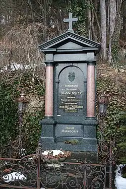 Mannlicher mourut le à Vienne au terme d'une courte maladie et a été enterré dans le cimetière de Hinterbrühl. Sa veuve, après avoir perdu une grande partie de l'héritage familial, se suicida le avec un prototype de pistolet à gaz mis au point par Mannlicher. Elle a été elle aussi inhumée dans le caveau familial de Hinterbrühl.