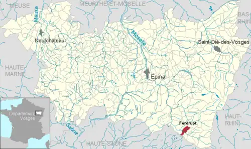 Ferdrupt (prononcer Ferdru [fɛʁdʁy] ) est une commune française de moyenne montagne située dans le département des Vosges, en région Grand Est. Elle fait partie du Massif des Vosges.