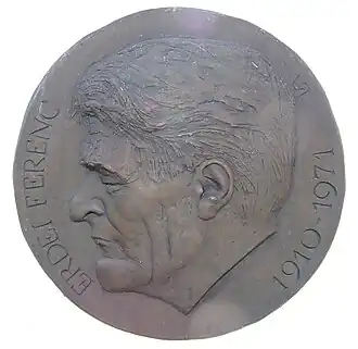 Ferenc Erdei (Makó, 24 décembre 1910[4] - Budapest, 11 mai 1971) Sociologue hongrois, membre du groupe des écrivains populaires, l'un des principaux combattants du Front de mars, homme politique, après 1945 en principe un représentant du Parti national paysan, en pratique il a pleinement coopéré avec les communistes, et a participé aux légalités de crabe des années 1950. Pendant la période du Grenier, de 1949 à 1953, il est ministre de l'agriculture, mais aussi ministre de l'intérieur et ministre de la justice. Pendant la révolution de 1956, il a été vice-premier ministre en dépit de ses antécédents politiques compromis, grâce à sa relation personnelle avec Imre Nagy, et sa destitution imminente à la suite du tollé a été empêchée par la répression de la révolution. Après 1956, il a de nouveau été une force motrice dans la lutte pour la fédéralisation des coopératives. Il a une importante production littéraire. Membre correspondant du MTA à partir de 1948, membre à part entière à partir de 1956, il a été de 1951 à sa mort (pour avoir été athée et marxiste) le pasteur, ou président laïc, du district de l'église réformée de Tiszántúli.