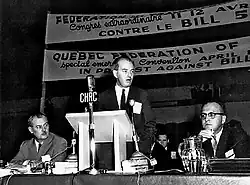 C'est dans cette perspective qu'il entre au Conseil exécutif de la Fédération des travailleurs et travailleuses du Québec (FTQ) en 1960. Cette importante centrale syndicale est fondée en 1957 après la fusion de la Fédération provinciale du travail du Québec (FPTQ) avec la Fédération des unions industrielles du Québec (FUIQ). Dès 1960, il accède à la présidence du comité d'éducation de l'organisation et se lance dans des démarches visant une autonomie de la FTQ vis-à-vis du Congrès du travail du Canada (CTC) en matière d'éducation[26]. Ces revendications, émergeant dans le contexte de la Révolution tranquille, visent à garantir la reconnaissance de la spécificité québécoise dans le contexte anglophone canadien.