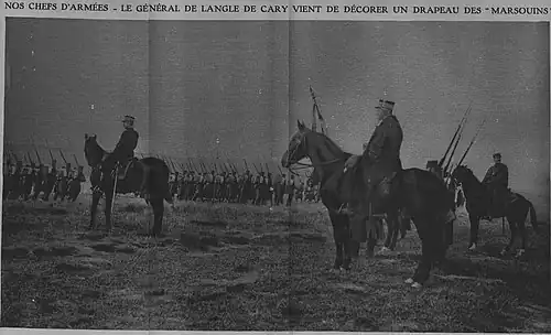 Fernand de Langle de Cary est officier général de l'Armée française, commandant la 4e Armée sur le front de la Marne. Connu pour être aimé de ses hommes. Enterré dans la crypte des Invalides avec les hommes de son rang.