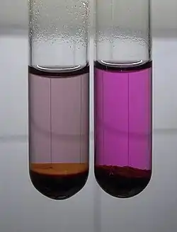 Les solutions aqueuses de ferrates sont roses lorsqu'elles sont diluées et rouge foncé ou violet à des concentrations plus élevées[4],[6]. L'ion ferrate est un agent oxydant plus puissant que le permanganate[7], et oxyde l'ammoniac en azote moléculaire[8].