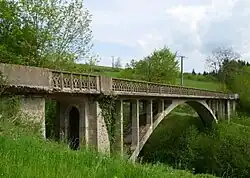 Il permet de franchir le ru Siamouzan et deux chemins, par une arche de plus de 50 mètres d'ouverture et un tablier de 64 mètres. Il est l'un des plus beaux viaducs de la ligne. Le train marquait une petite halte à son abord, matérialisée par la maisonnette située à gauche de l'ouvrage.