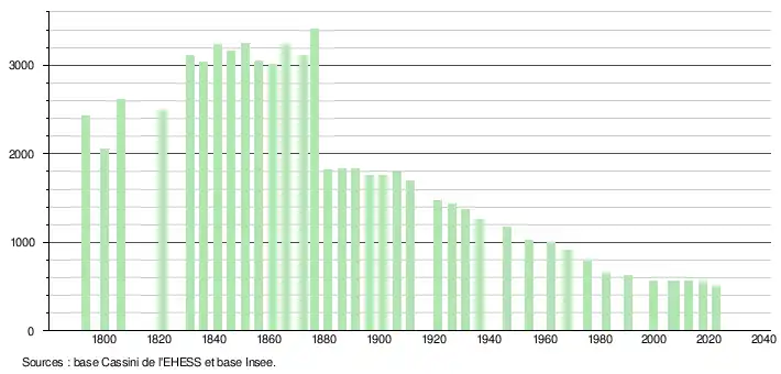 506 hab. (2022 en évolution de −10,12 % par rapport à 2016)