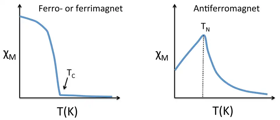 Ces phénomènes d’alignement n’apparaissent qu’à des températures inférieures à une température seuil, dite température de Curie (pour les matériaux ferromagnétiques et ferrimagnétiques) ou température de Néel (pour les antiferromagnétiques).