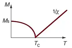 En utilisant la même théorie, on peut calculer l’évolution de Msp avec Happl. Si l’on réussit à obtenir que l'approximation de ce champ est de faible intensité, il est alors possible de montrer que la susceptibilité χ s'écrit avec C la constante de Curie. Traditionnellement, pour représenter les propriétés magnétiques d’un matériau ferromagnétique, les courbes Ms(T) et sont tracées sur un même graphe.