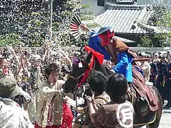 L'événement principal du festival est un saut à cheval. Les chevaux sont montés par des jeunes gens de 17 à 19 ans représentant les six sections de la ville. Les chevaux courent sur une colline avant d'essayer de sauter par-dessus un mur de deux mètres de haut. Le premier jour, les représentants de chaque section sautent au-dessus du mur deux fois pour un total de douze sauts. Le deuxième jour, chaque concurrent ne fait qu'une seule tentative pour un total de six sauts. D'autres événements suivent le saut de cheval le deuxième jour, dont le yabusame, une forme de tir à l'arc.