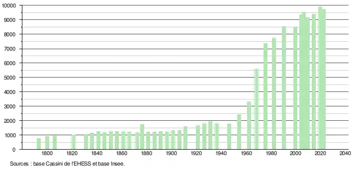- ↑ Population municipale de référence en vigueur au 1er janvier 2025, millésimée 2022, définie dans les limites territoriales en vigueur au 1er janvier 2024, date de référence statistique : 1er janvier 2022.