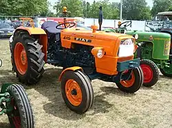 - Fiat 315 - équipé du moteur diesel 4 cylindres Fiat type 605D 015 de 1.901 cm3 de cylindrée développant 33 ch DIN à 2.500 tr/min et un couple 110 N m à 1.600 tr/min. Boîte de vitesses à 6 rapports avant et 2 arrière avec réducteur épicycloïdal de série et un autre supplémentaire en option ajoutant 3 vitesses AV rampantes, embrayage bi-disque. Arbre de prise de force indépendant. Attelage 3 points pour outils portés, trainés ou machines à prise de force, relevage hydraulique 1.400 kg. Empattement : 1.925 mm, longueur : 3.015 mm, largeur : 1.660 mm, hauteur au capot : 1.300 mm, voies AV/AR : variable de 1.300 à 2.010 mm, garde au sol : 465 mm, poids à vide sans masses : 1.540 kg, pneumatiques AV 5.50-16 - AR 11-28,