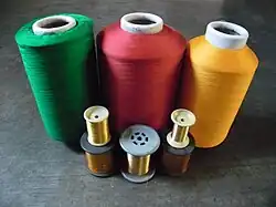 Bobines de fils de polyester.