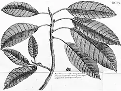 Illustration originale de Ficus maxima indica, réalisée par Hans Sloane en 1725. C'est la première illustration de Ficus aurea : Les figues, représentées de façon non jumelée dans l'illustration, furent à l'origine d'une confusion dans la taxonomie de cette espèce.