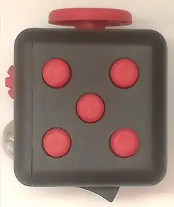 Le Fidget Cube est un petit appareil portatif en forme de cube conçu par Matthew et Mark McLachlan, cofondateurs du studio de design Antsy Labs, basé au Colorado[1]. Il a des « outils » de tous les côtés : un interrupteur, des engrenages, une boule roulante, un joystick, un disque rotatif, une « pierre d'inquiétude (en) » et cinq boutons. Il est destiné entre autres aux personnes souffrant de trouble du déficit de l'attention dans le but de se concentrer ou de se calmer.