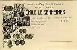 Valentin Leisenheimer crée des ateliers à la Servette en 1848 et produit des aiguilles de montre, ses fils reprendront l’entreprise qui reste dans la famille jusqu’en 1918. Les ateliers déménagent à la rue de Lyon avant la fin du XIXe siècle[3],[4].