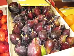 • Figue de Solliès (France, 2011), figue fraîche de la variété Bourjassotte noire, cultivée dans les Maures.