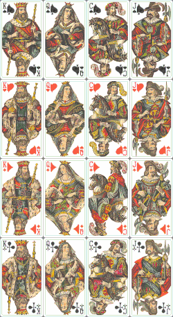 - les jeux allemands et suisses font également usage de trois figures masculines : un Unter (un homme de basse extraction ou un soldat), un Ober (un homme de classe aisée) et un roi ;