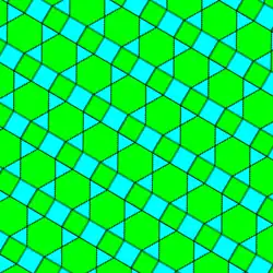 ![]() Ce pavage semi-régulier est également2-isogonal. Il est constitué de triangles équilatéraux, de carrés et d'hexagones réguliers. |