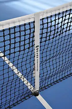 Il doit être de couleur sombre et être surmonté d'une bande blanche de 10 à 13 cm. Lors d'une partie de simple, deux piquets supplémentaires de 1,07 m sont placés dans les couloirs ; ces piquets sont retirés pour les parties de double. Sa longueur est de 12,70 m environ, les mailles doivent mesurer 45 mm de côté environ.