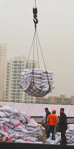Dans le transport maritime, les filets de levage de marchandises sont utilisés pour charger et décharger des marchandises. Le filet est déployé par les dockers, qui y placent les marchandises. Ils attachent ensuite les sangles à un crochet de grue. En soulevant le crochet, les coins du filet sont tirés autour de la cargaison. Il en résulte une charge équilibrée et sécurisée qui peut être soulevée en toute sécurité. Dans le secteur de la construction, les marchandises sont également transférées d'un endroit à un autre à l'aide de filets de chargement. Lorsqu'ils sont utilisés pour transférer des marchandises par hélicoptère, ils sont appelés filets de chargement « suspendus ».