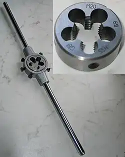 Une filière est un outil utilisé pour réaliser un filetage ou filets sur une tige de matière variable (métal, plastique, bois, etc.) afin de réaliser une tige filetée. Une filière s'utilise avec un porte-filière.