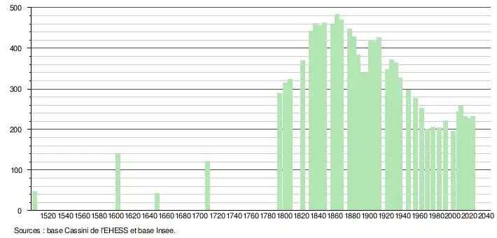 - ↑ Fiches Insee - Populations de référence de la commune pour les années 2006, 2007, 2008, 2009, 2010, 2011, 2012, 2013, 2014, 2015, 2016, 2017, 2018, 2019, 2020, 2021 et 2022.