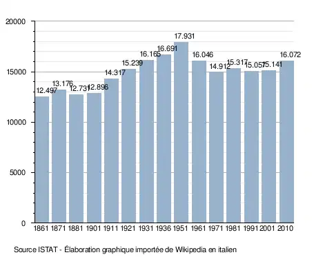 - ↑ (it) Popolazione residente e bilancio demografico sur le site de l'ISTAT.