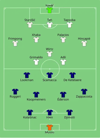 | Cartons | Atalanta : Djimsiti Scamacca Zappacosta Koopmeiners Leverkusen : Wirtz Andrich |